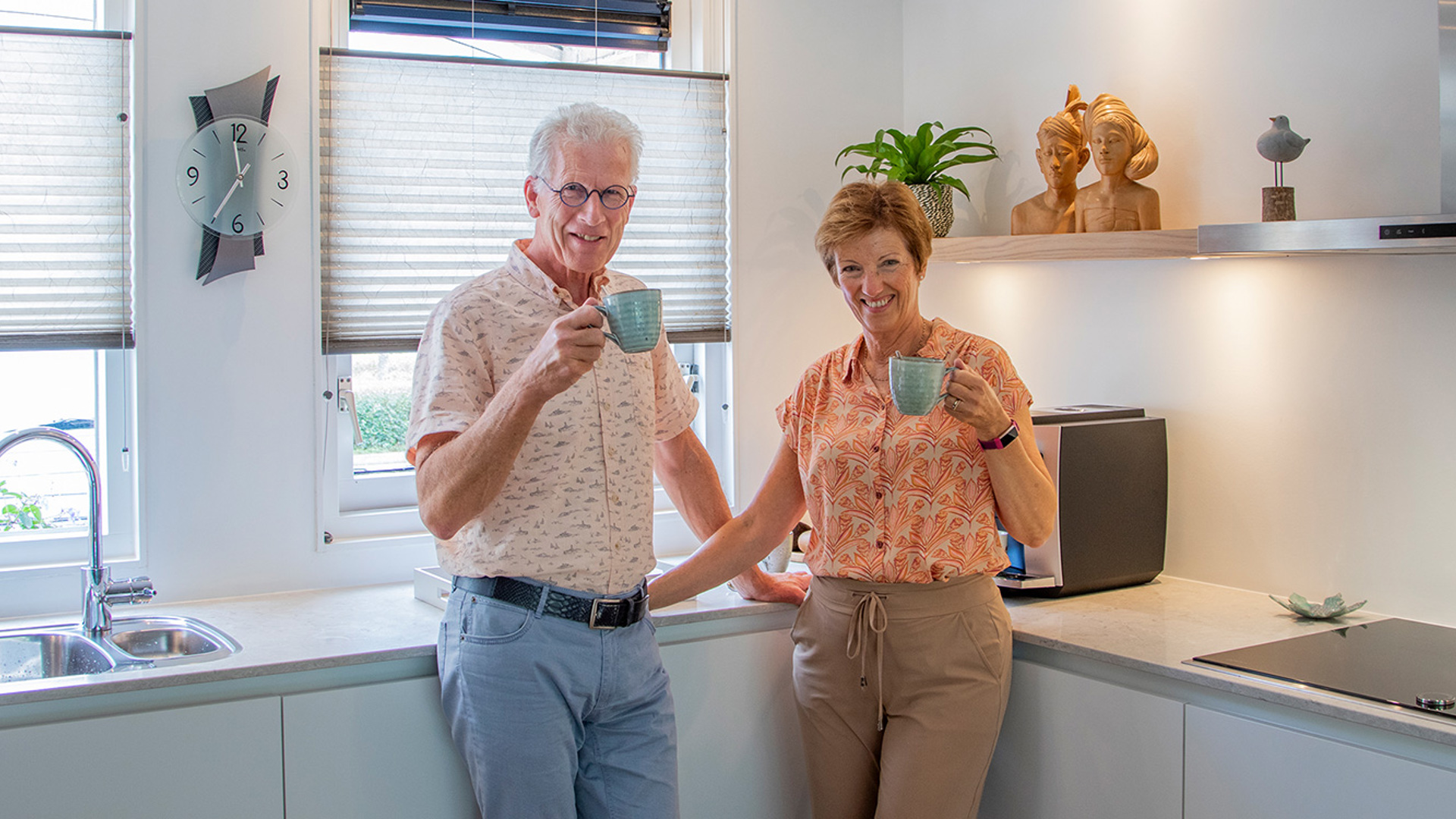 Eric en Mary Alferink uit Heemstede kunnen hier over meepraten: bij Keur Keukens (onderdeel van DB Keukens) kochten zij een keuken met schiereiland. Zie hen eens proosten op het mooie resultaat!