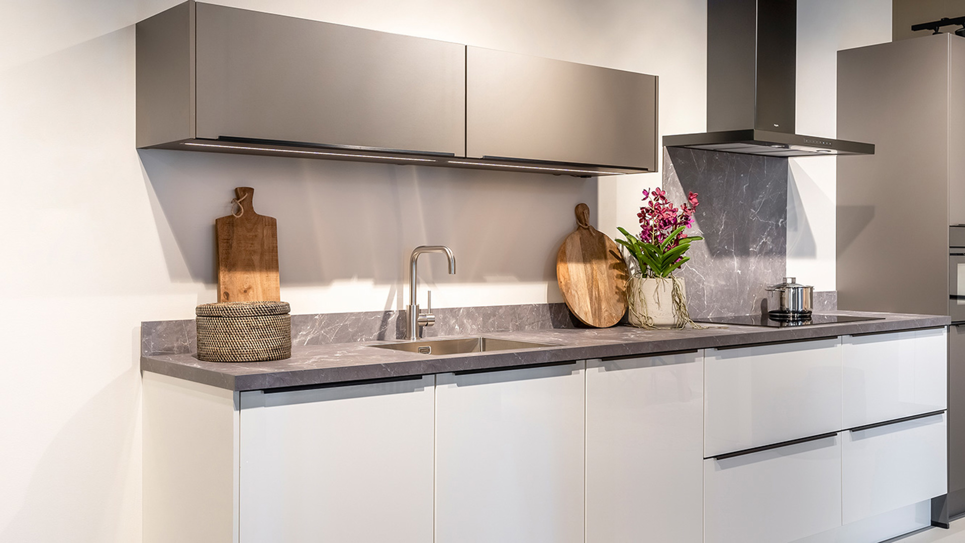 Het voordeel van een bezoek aan onze keukens showroom is ons unieke hoog-laag systeem. Aan dit elektrisch verstelbare werkblad bepaalt u de ideale werkhoogte die ook meetelt bij het vaststellen van uw gootsteen afmetingen.