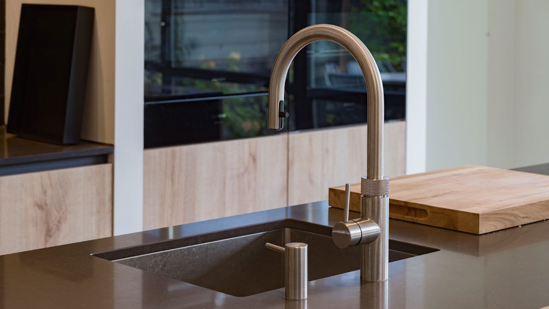 Levi verkoopt bijna altijd keukens met een Quooker. “Iedereen is fan van die handige kokendwaterkraan. Acht op de tien klanten kiest wel voor een Quooker", zegt hij. Je kunt ook extra functies toevoegen, zoals koud of bruisend water tappen. Toch gaan de meeste mensen voor enkel de kokendwaterfunctie. “De Flex-kraan met uittrekslang is erg geliefd, vaak het ronde model in stijlvol RVS", voegt Levi toe.