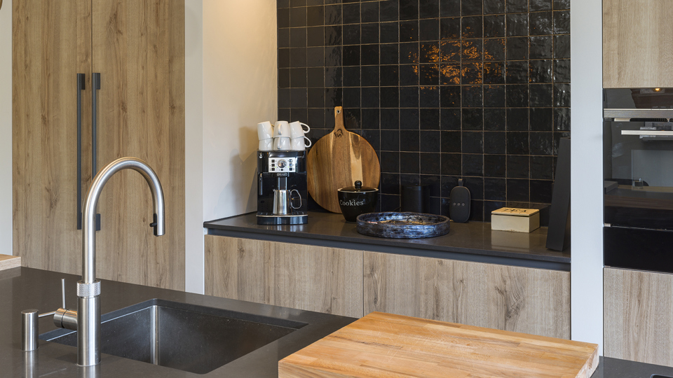Koffiecorners worden steeds populairder. 70 procent van de keukens heeft er een, weet verkoopadviseur Cornelis. “Mensen houden van een knus én functioneel koffiehoekje. Met een vaste plek voor je koffieapparaat en bijhorende accessoires blijft je overige werkblad netjes.” En het brengt sfeer. Met de juiste styling – kleurrijke mokken, glazen voorraadpotten of een klein dienblad – krijg je een stijlvol hoekje. Er zijn ook genoeg manieren om je koffiecapsules of bonen mooi op te bergen.