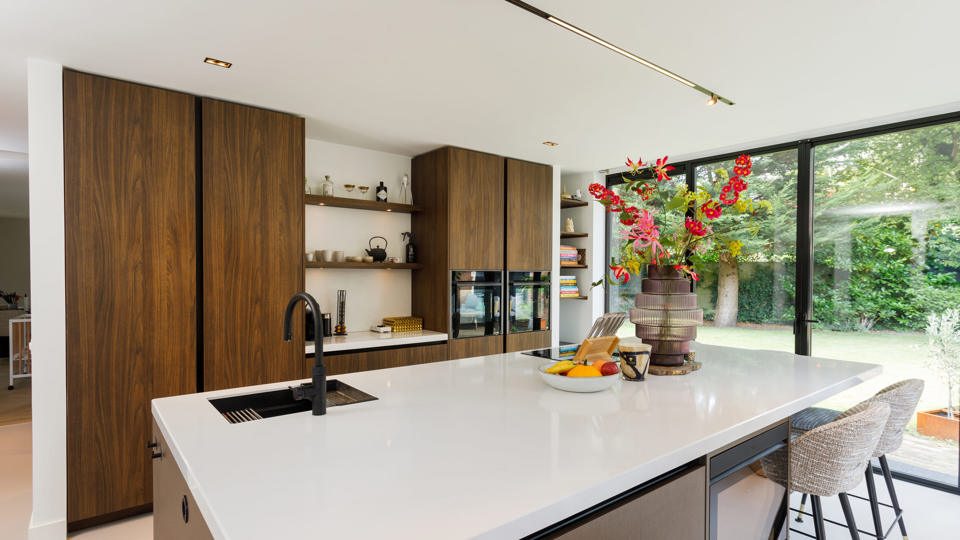 Als dit je afschrikt, is een keuken met houtlook misschien meer iets voor jou. Dat is een kunststof basis met een print van hout, zoals de keuken van het jaar 2025 . Krasvast en onderhoudsvriendelijk. Een sopje erover en klaar ben je. “Bij DB Keukens hebben we opties die nauwelijks van echt te onderscheiden zijn”, vertelt Joanne. “DB Select, Siematic, Residentic én Excellentic verkopen kunststof deuren met houtprint. Samen is dat een enorme collectie!”