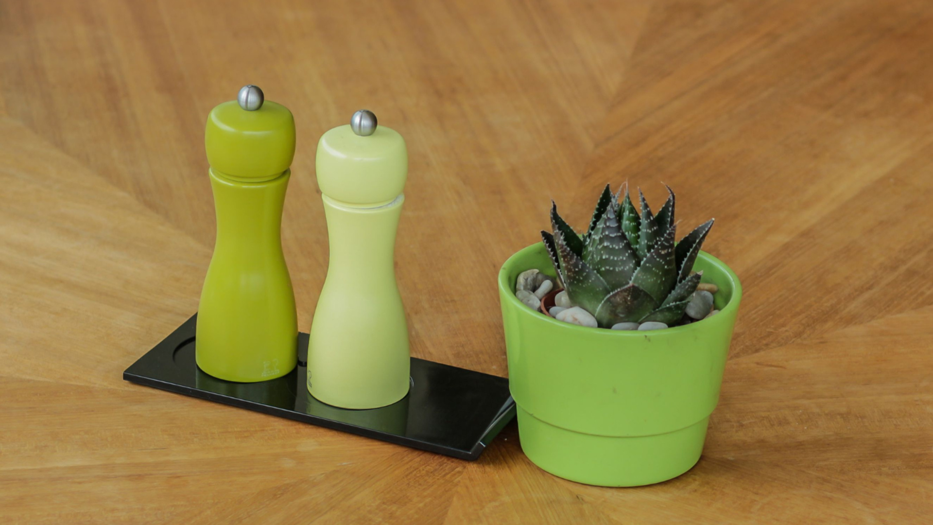 Ga voor servies in vrolijke kleuren, van blauw tot lila en oranje. Val op met een zout- en pepermolen in een felle kleur. Een mooie vaas met bloemen is de perfecte toevoeging op een kookeiland. Vazen in de vorm van fruit, zoals aardbeien of citroenen, zijn populair en voegen veel kleur toe. En waarom zou je een saaie broodrooster kiezen als je er ook één in het rood of blauw kunt krijgen? Wees creatief, je kunt het zo gek maken als je zelf wilt.
