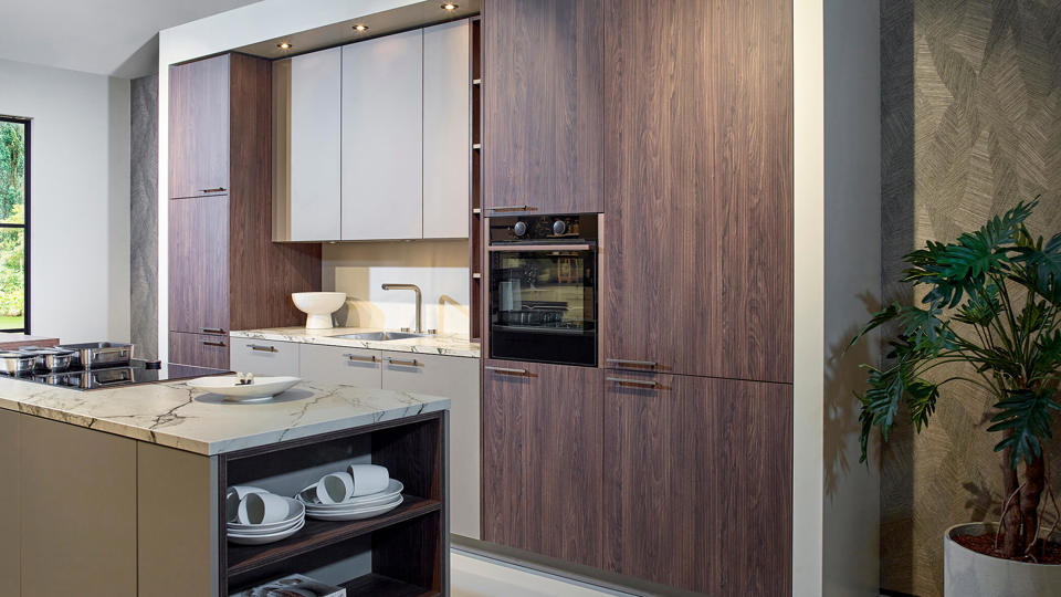 Een nieuwe trend: wall solutions. Henri legt uit: "Hiermee hang je spullen aan de muur, van schapjes tot apparaten. En zelfs verlichting. Zo is je muur functioneel én stijlvol. Junior voegt hieraan toe: "Of een ronde nis in je keuken. Dit geeft een open en ruimtelijke gevoel." Deze uitsparingen geven je keuken diepte. Of de nis nu in de muur zit of deel uitmaakt van een kastenwand, de ronde nis wordt dé trend van 2025."