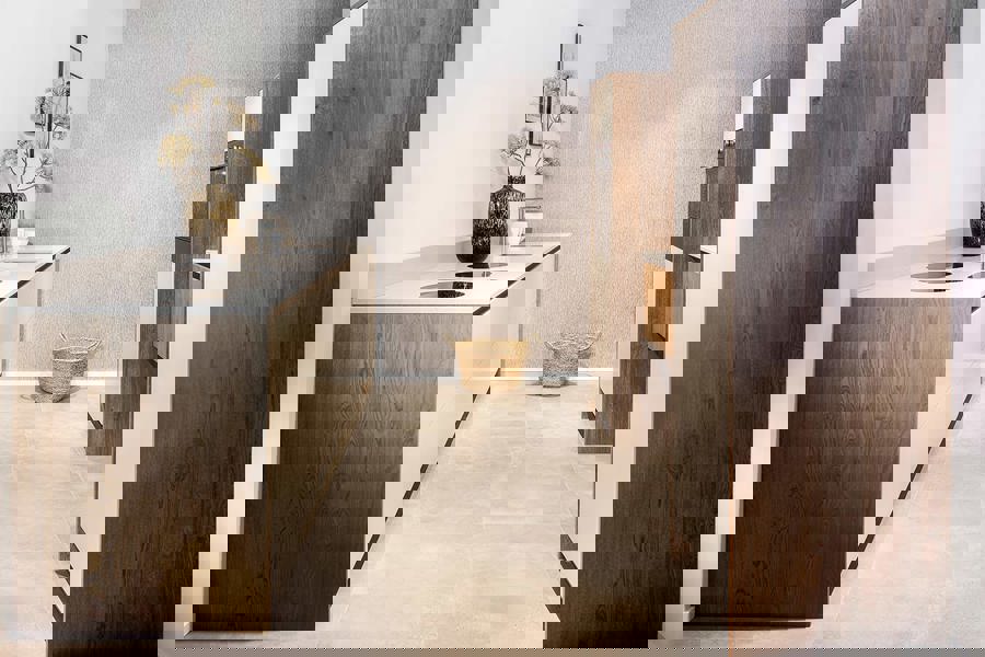 Deze keuken laat zien hoe strak design en warme materialen elkaar versterken. Je ziet direct de rust en balans die ontstaat door de combinatie van donkere houttinten, zachte zandkleuren en een krachtig natuurstenen werkblad. Alles klopt. Van de de grepen tot fronten. Dit is een keuken waarin aandacht zichtbaar wordt en waar je elke dag met plezier samenkomt.