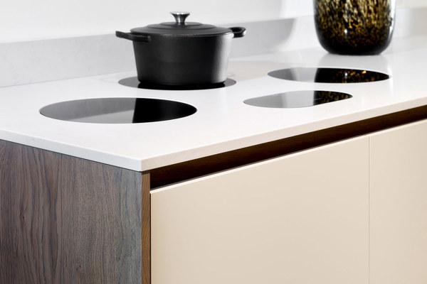 Let eens op de bijzondere inductiekookplaat. Deze keuken is een maatwerkkeuken, dus naar eigen wens aan te passen.
