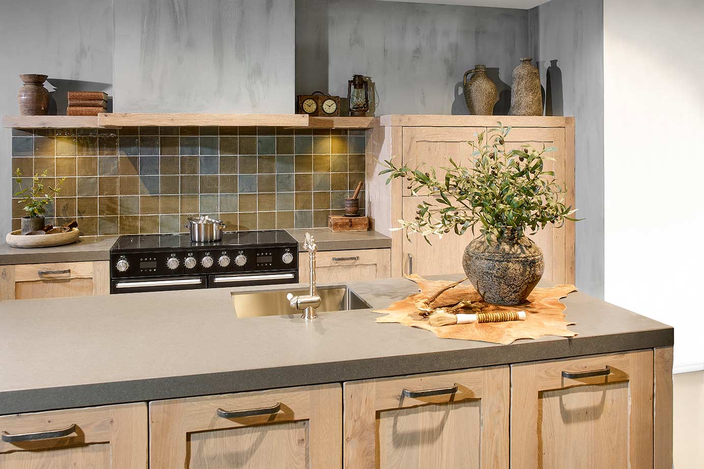 Bekijk deze massief eiken keuken in een landelijke opstelling. De keuken is van ons merk Residentic, wat betekent dat de keuken op maat is samen te stellen. De fronten zijn van massief hout en hebben een robuuste, maar sfeervolle landelijke uitstraling.