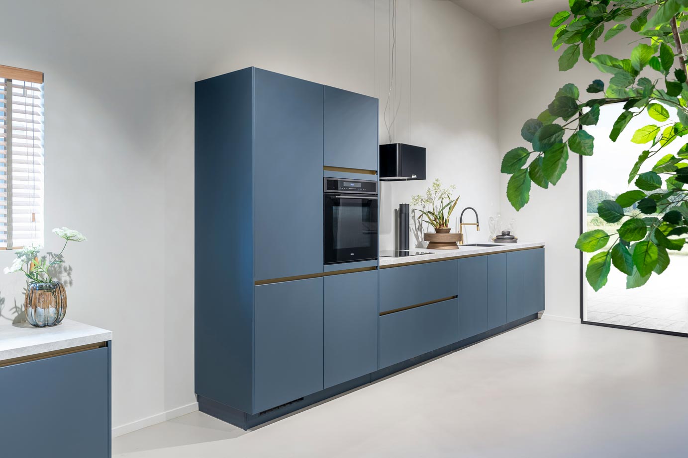 Verrijk je huis met de perfecte mix van stijl en functionaliteit - de moderne blauwe keuken van je dromen. Met hoogwaardige ETNA-apparatuur en een ruime indeling, biedt deze keuken alles wat je nodig hebt om met plezier te koken en te genieten van heerlijke gerechten.