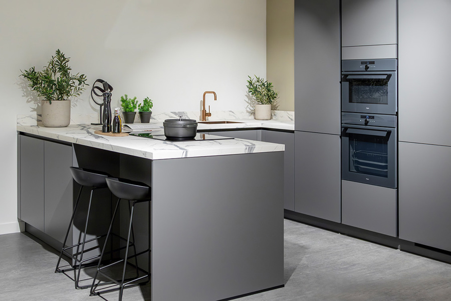 Pelgrim: koel/vriescombinatie, combistoomoven, inductiekookplaat, vaatwasser, plafond afzuigkap