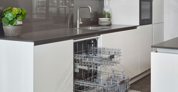 Pelgrim: Vaatwasser, inductiekookplaat, oven met magnetronfunctie en inbouwkoelkast. Novy: Plafond unit en werkblad verlichting