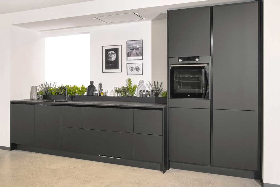 Een keuken van het hoogstaande merk Schmidt, voorzien van hoogwaardige ATAG apparatuur. Bekijk deze moderne rechte keuken met greeploze kasten en lades. Deze rechte grijze keuken past goed in een modern interieur en past dankzij de matte kleurstelling uitstekend bij de huidige keukentrends.