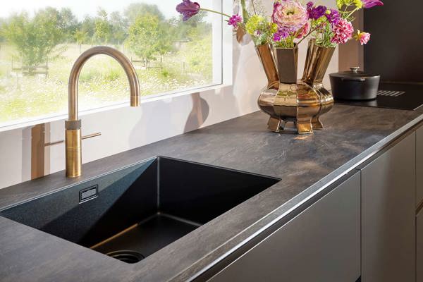 ATAG: koelkast, inductiekookplaat met afzuiging, oven met magnetron, vaatwasser. Quooker: kokendwaterkraan