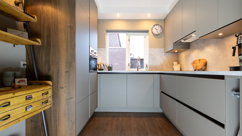 Kleine U-keukens kunnen voorzien worden van slimme oplossingen om ruimte te besparen zoals: