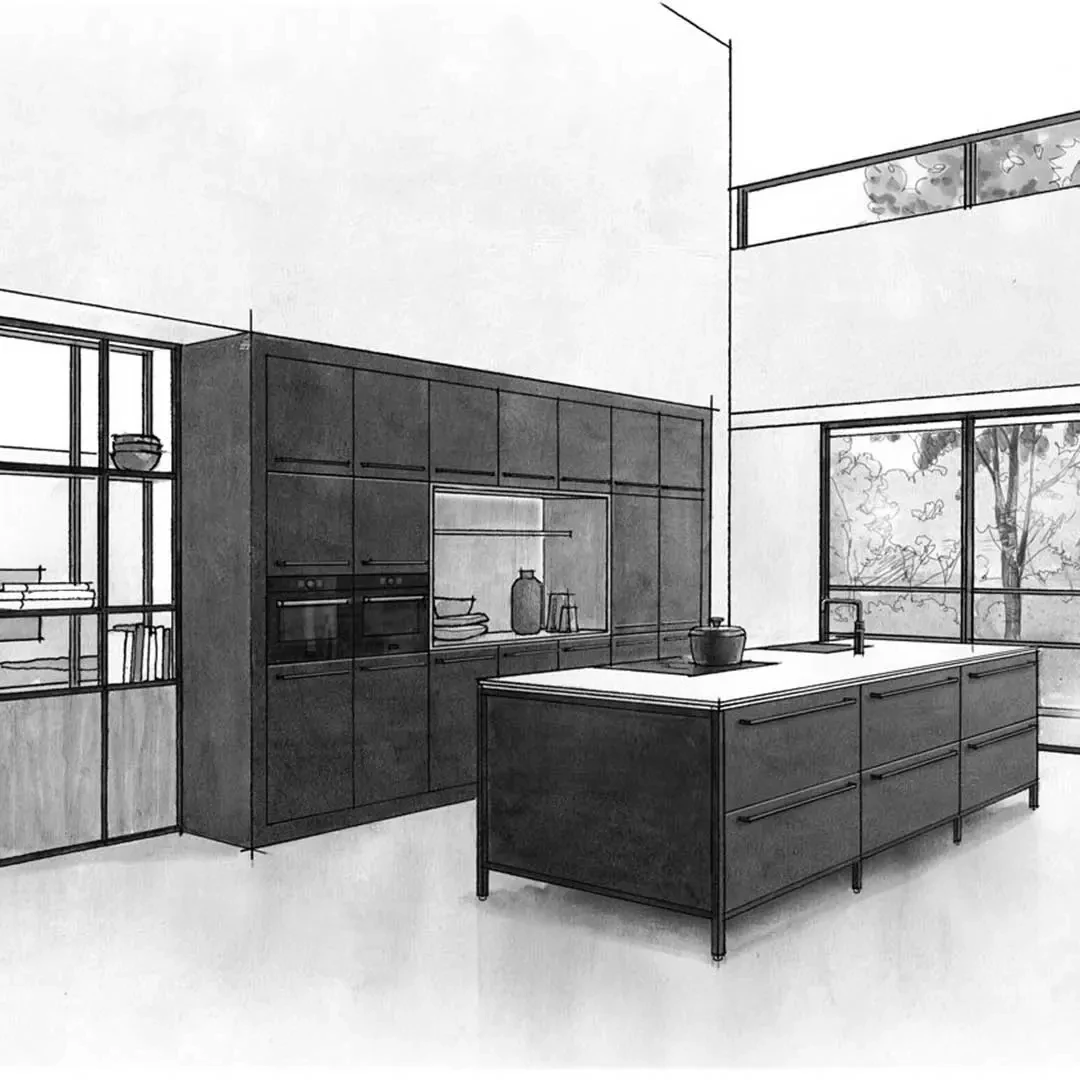 Tijdens het ontwerpproces brengen we uw ideeën tot leven in een gedetailleerde keukenschets. Met onze geavanceerde ontwerptools visualiseren we uw nieuwe SieMatic keuken tot in de kleinste details. Of het nu gaat om de indeling, kleuren of materialen, u krijgt een realistisch beeld van hoe uw droomkeuken eruit zal zien. Bij een bezoek aan onze showroom presenteren we deze schets op een heldere en inspirerende manier, zodat u zeker weet dat alle keuzes perfect op elkaar zijn afgestemd. Samen perfectioneren we de keuken, zodat het ontwerp volledig aan uw verwachtingen voldoet.
