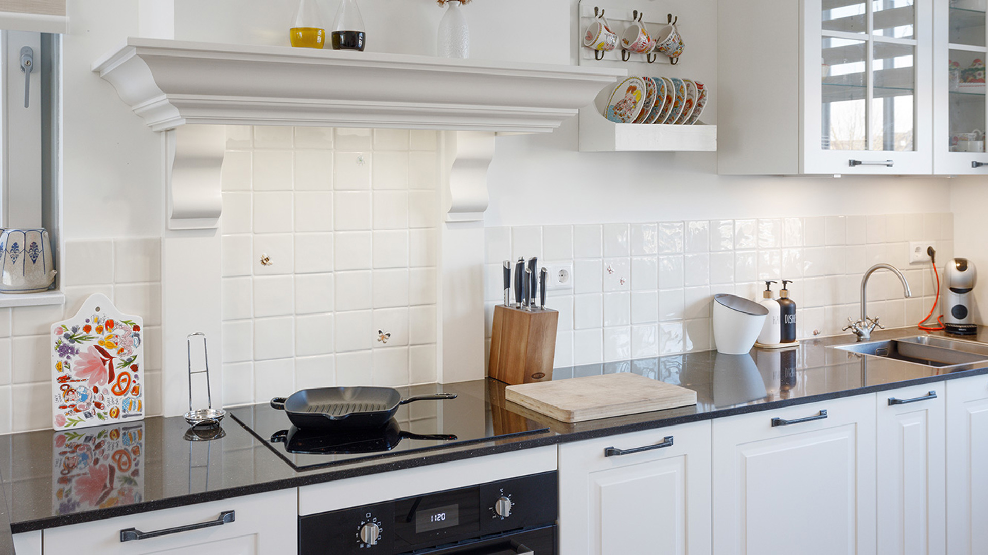 Een leuk hebbeding in deze keuken is de kookplaat met flexibele kookzone. Je kunt van twee kookzones één maken, zodat er plaats is voor een lange schaal. Vis kun je op deze kookzone gelijkmatiger garen. Ook de losse koelkast bevalt goed.