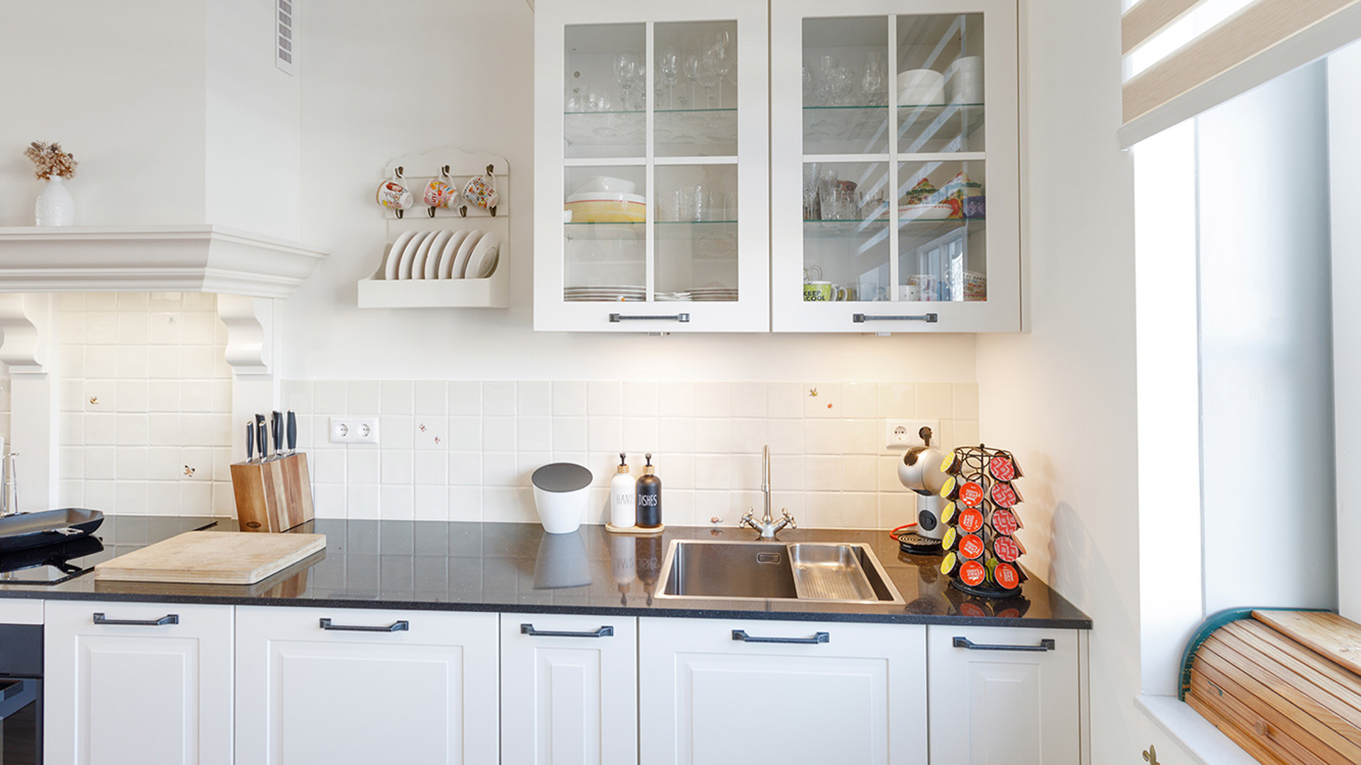 In een tv-programma zien ze een dame tegen een decor van een rij bovenkasten met ruitjes. Dat vinden ze in elk geval erg sfeervol. Dat willen ze.