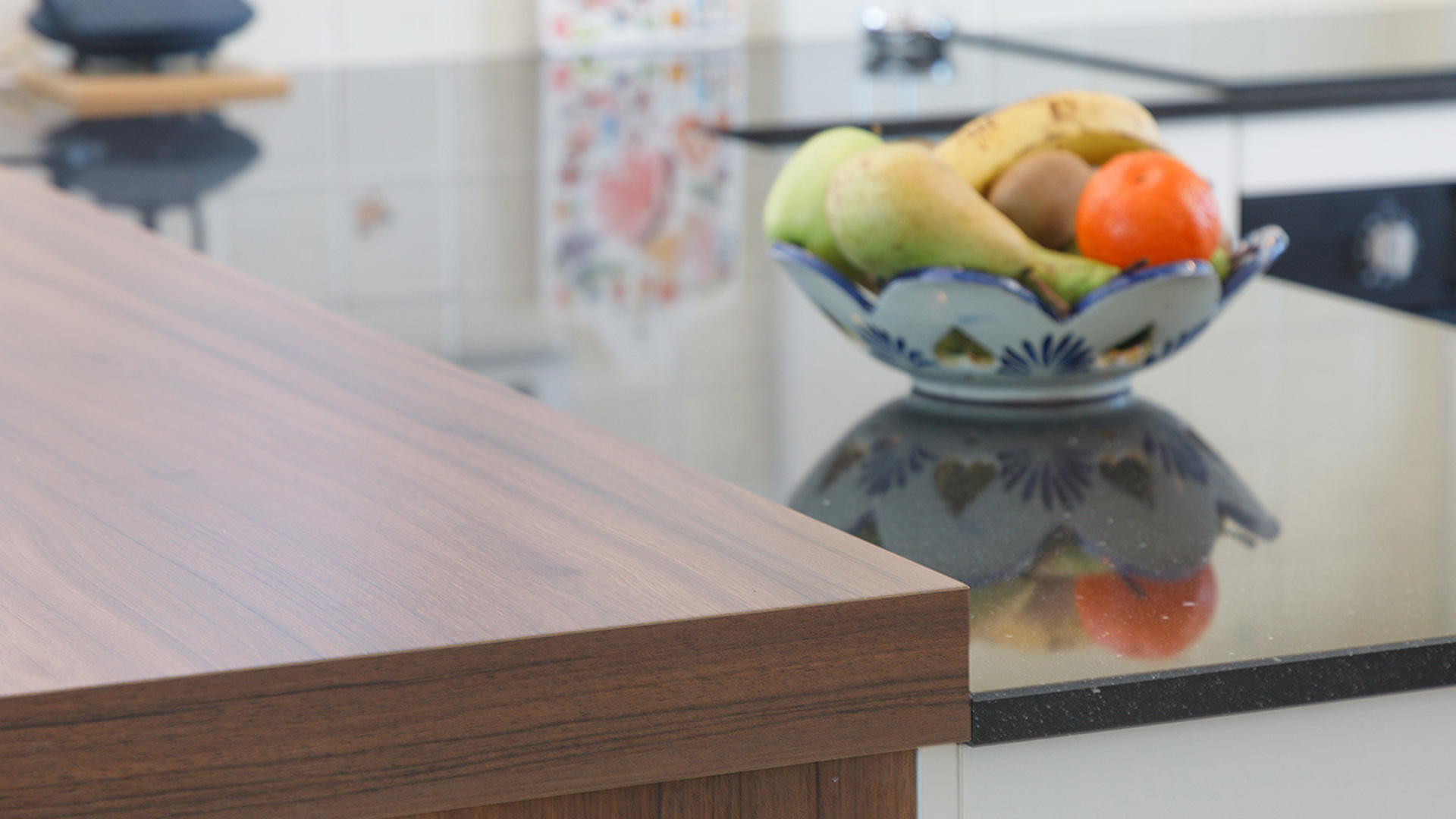 Een wens is ook om kleurcontrast te creëren. Het contrast zoeken ze tussen het aanrecht en de keuken. Donker composiet wordt het werkblad.