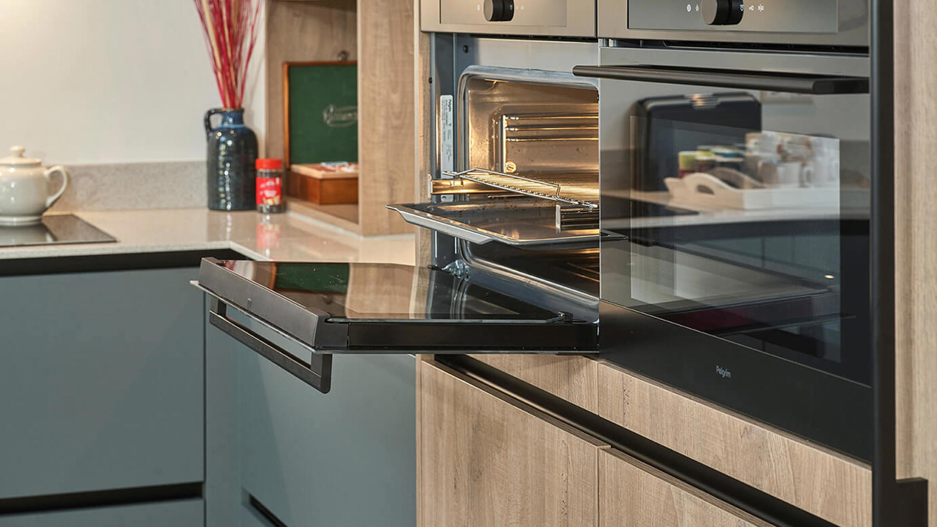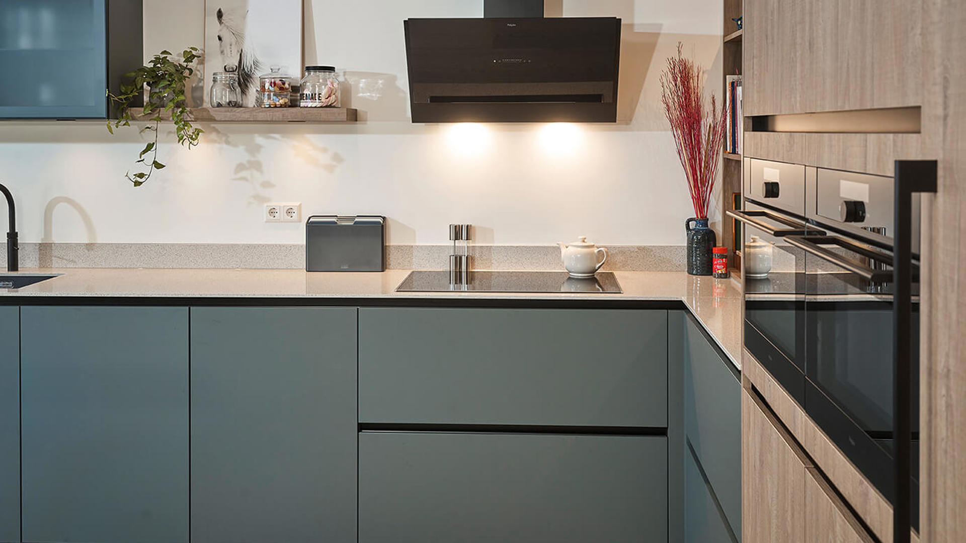 En toch! Wanneer ze bij Anovi Keukens in Berkel en Rodenrijs binnenkomen, zien ze daar zo’n prachtige kleur groen dat in elk geval Annette direct valt voor deze vernieuwende tint. Hij niet. Wit en modern is nog steeds het uitgangspunt.