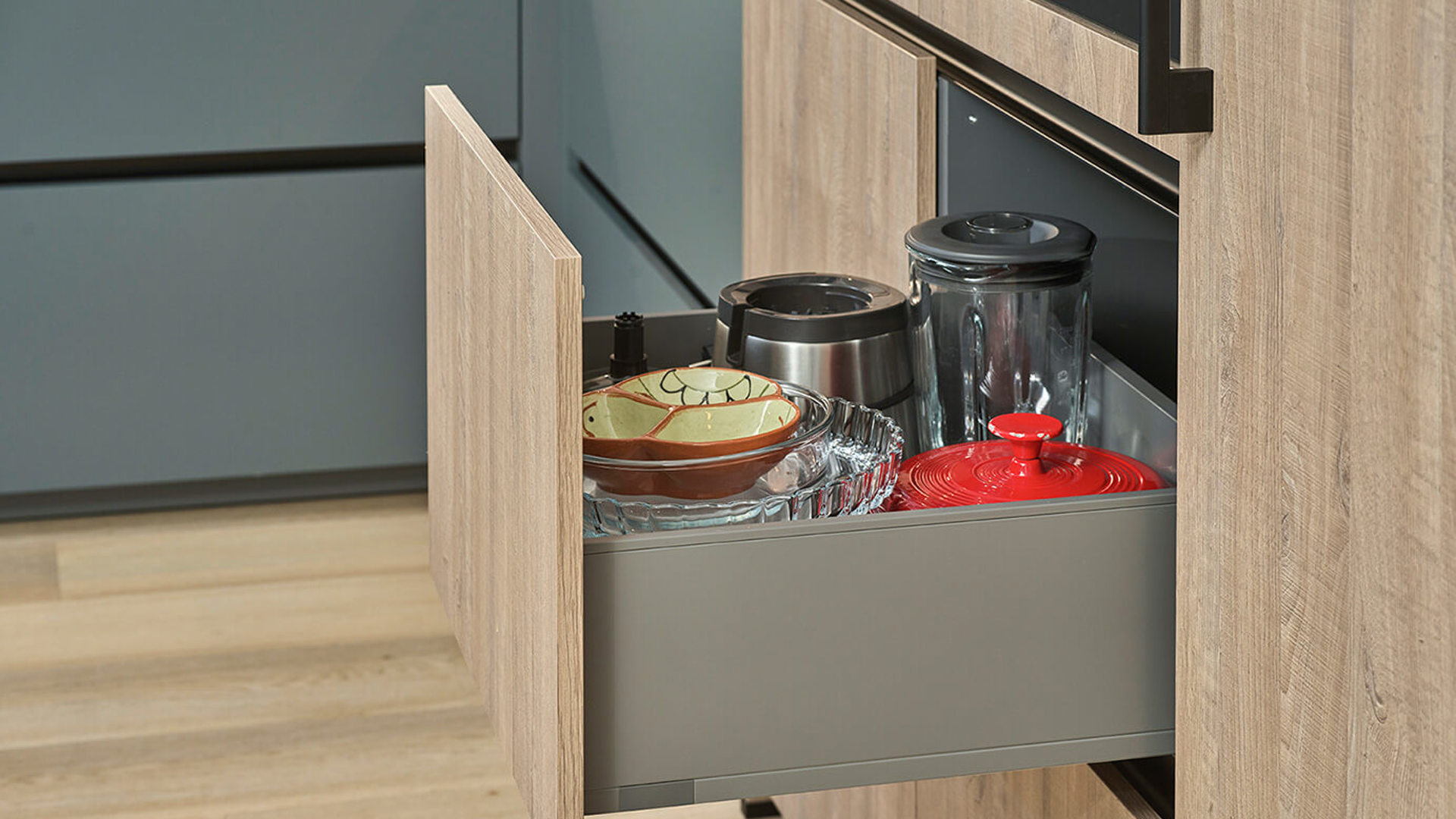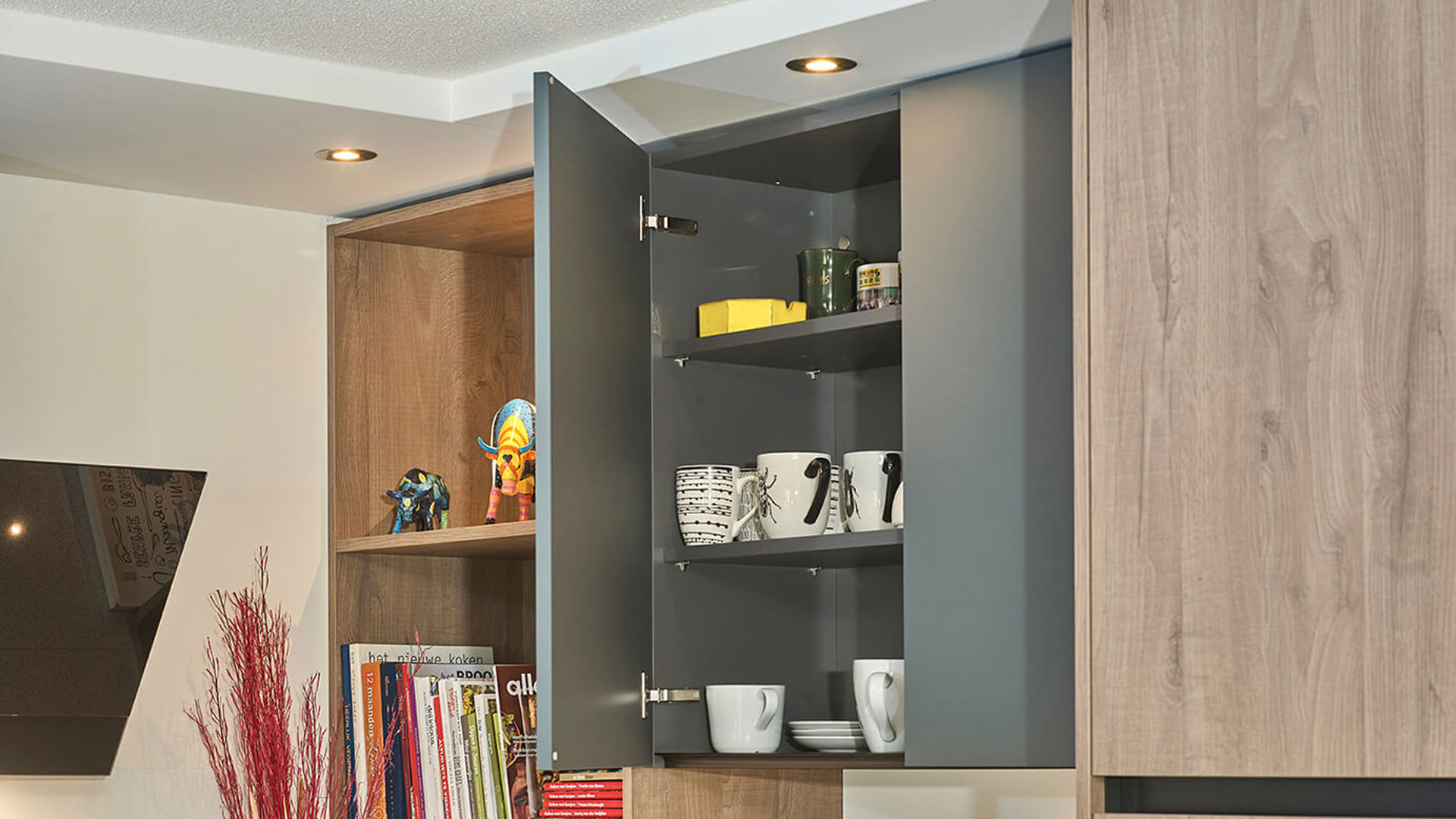 Hoge kasten bepalen het aanzien van veel moderne keukens, Annette is er aanvankelijk niet gecharmeerd van. Wordt haar greeploze keuken niet te overweldigend? Ze vindt het onhandig, althans, dat denkt ze.